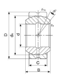 Rubber Sealed Spherical Plain Bearing: Consisting of steel raceway / body with a Gcr15 hardened Chrome steel ball (58-64 HRC) provided with an oil hole and groove Benefits: Cost effective replacement bearing, sliding surfaces are steel against steel, rubber seals Note: The outer raceway may have as part of the manufacturing process a split or crack |