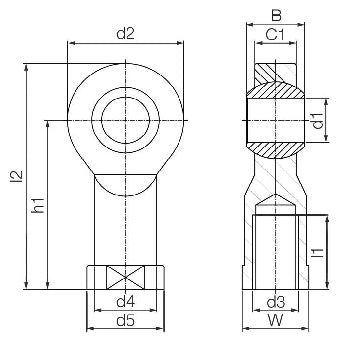 IGUS igubal® KBRM series right hand female thread rod end bearings: These maintenance free plastic rod ends are a dry operation solution with a high stiffening and very high fatigue strength in varying loads. They compensate for misalignment errors and edge loads and are insensitive to dirt, dust and lint and have high dampening qualities. They are resistant to corrosion and chemicals. Operating Temperature Range: -30 Deg C to + 80 Deg C long term - short term up to +120 Deg C Materials: Ball material iglidur® W300, Housing: igumid G Uses: They are suitable for rotary, oscillating and linear movements and are light weight. Tolerances: They are manufactured in accordance to DIN ISO 12240 Benefits: Corrosion and chemical resistant, lightweight, stiff, dry operation, maintenance free |