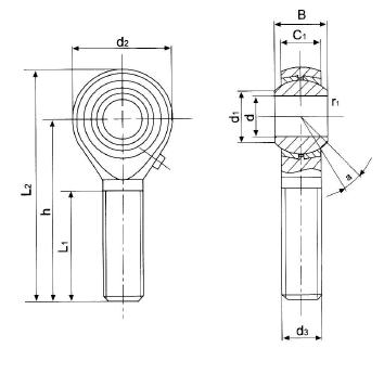 Male Rod End with Phosphor Bronze Race: Right hand thread male rod end consisting of galvanized mild steel body with a Gcr15 hardened Chrome steel ball (58-64 HRC) running in a phosphor bronze raceway. Benefits: Cost effective replacement bearing, sliding surfaces are steel against phosphor bronze. |